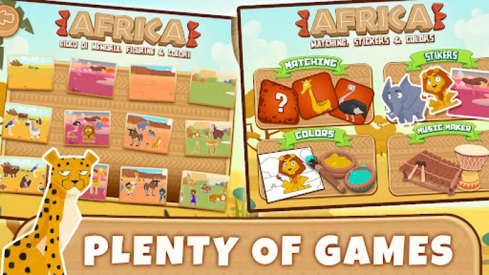 Get ready to discover the magic of African Animals with our app - designed for kids who love coloring, matching memory games and music!