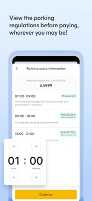 • Information on applicable regulations: Consult the parking rates and regulations before paying.