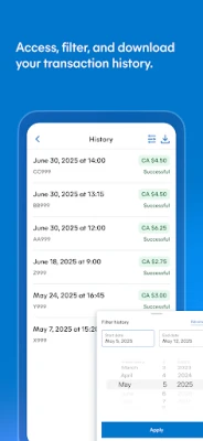 • Account management: You can add more than one credit card to your account, and view or download your transaction history at any time with the option of filtering it by date or period.