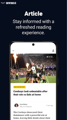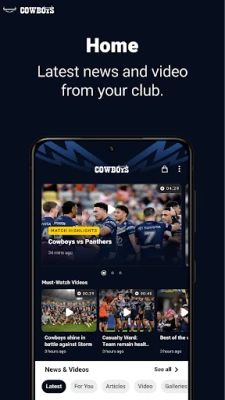 Welcome to the brand new Official North Queensland Cowboys app. Our completely redesigned experience gives you access to your favourite team and favourite players - plus you'll get breaking North Queensland Cowboys news, live scores, stats, game day information and match highlights. It's everything you need to know about the North Queensland Cowboys, no matter where you are.